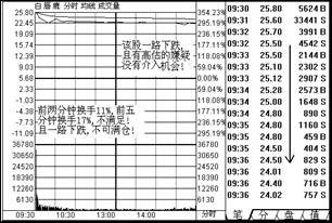 图 9 6 .开盘沿着均价线一路震荡下跌的,不是我们狙击的对象( 图 10、图11)。