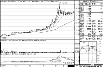 图 2 我觉得炒作一个新股,最首要的是应该认真研读招股说明书,认真分析其主营业务的前景,股本结构的构成,公司董事会成员的背景和它所投资的子公司的状况。在蛛丝马迹中发掘公司与众不同的一面。这种挖掘很重要,你只有对新股成竹在胸,才能占得先机,快人一步。如凯迪电力,当时人们普遍把它当做一般的电力股看待,看到开出如此高的价位,都很不以为然。然而我们通过招股说明书得知,它准备投资垃圾发电站,这是一个绝无仅有的炒作题材,所以毫不犹豫地杀入( 图 3)。
