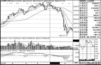 图 3 其二,对基本面了解透彻了,还有一个把握时机的问题。当市场对新股期望过高时,再好的新股也难逃一步到位,高开低走的命运。天时还要讲究地利,炒新股掌握时机也很重要。一般来说,当市场很久没有上新股,第一只新股上市的炒作的概率就大。另一方面当新股的收益越来越低,投资者越买越套,已对新股麻木时,这时也是买入新股的好时机。如刚上来的华冠科技,前面的新股 就套 死了相当多的追 新族 。 开盘前我们还要计算好该股换手达到10%和20%时的成交量。 炒作新股的条件 市场条件 1.市场不能处在行情的末端。因为此时股价很容易被高估,冲高后回落的可能性极大,此时风险要大于利润,我们要坚决回避(图4)。